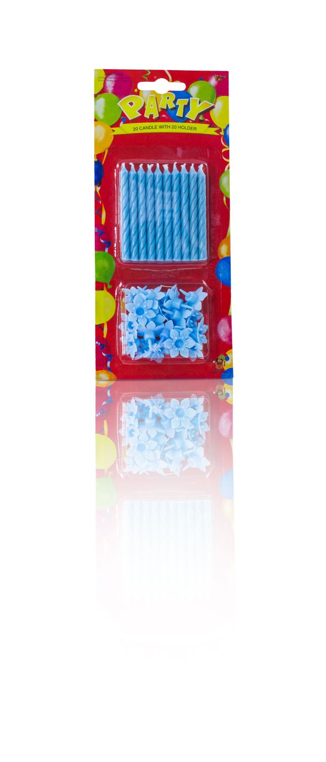 Velas de cumpleaños LULUNA con 20 velas y 20 soportes, azul, 6,5cm, Ø0,5cm