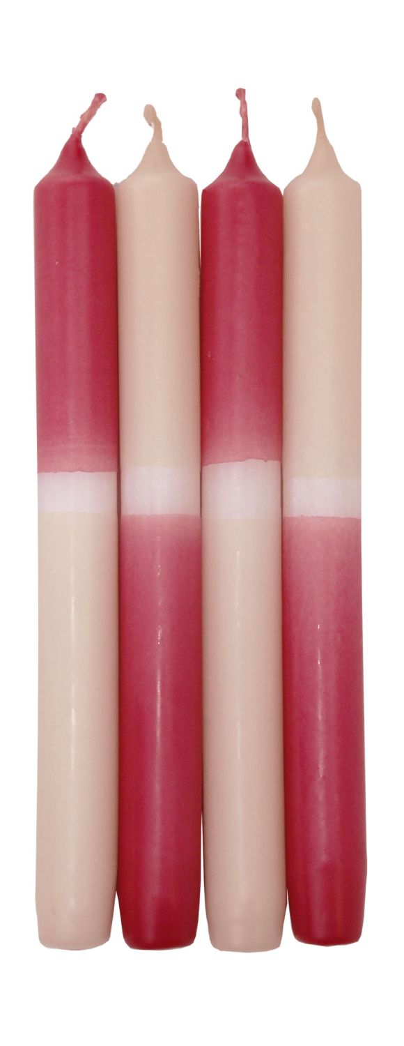 Velas de palo Dip Dye LISSITA, 4 unidades, frambuesa-crema, 25cm, Ø2,3cm, 11h