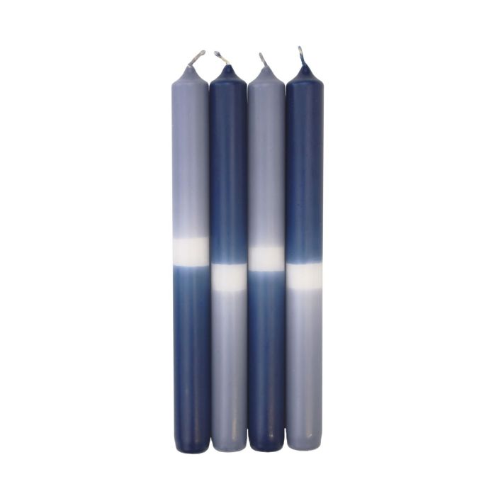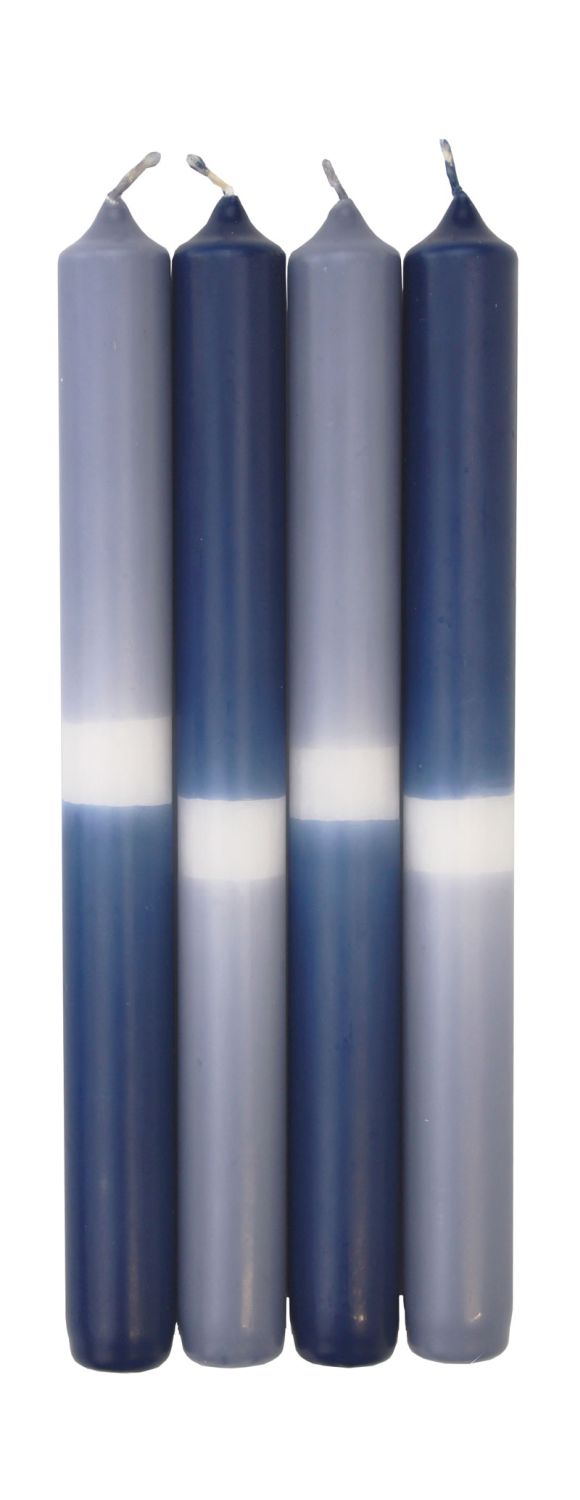Velas de palo Dip Dye LISSITA, 4 unidades, gris azulado-azul oscuro, 25cm, Ø2,3cm, 11h