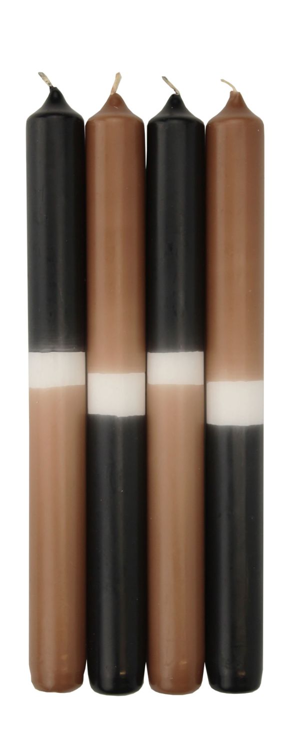 Velas de palo Dip Dye LISSITA, 4 unidades, negro-caramelo, 25cm, Ø2,3cm, 11h