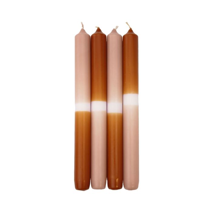 Velas de palo Dip Dye LISSITA, 4 unidades, salmón-cognac, 25cm, Ø2,3cm, 11h